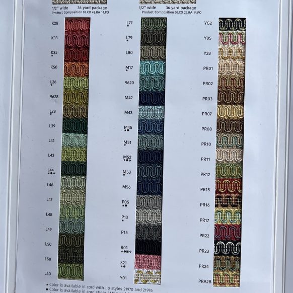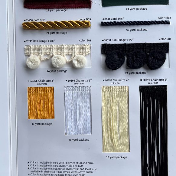 A must have for showrooms! Easily display all gimps, trims, and colors available.